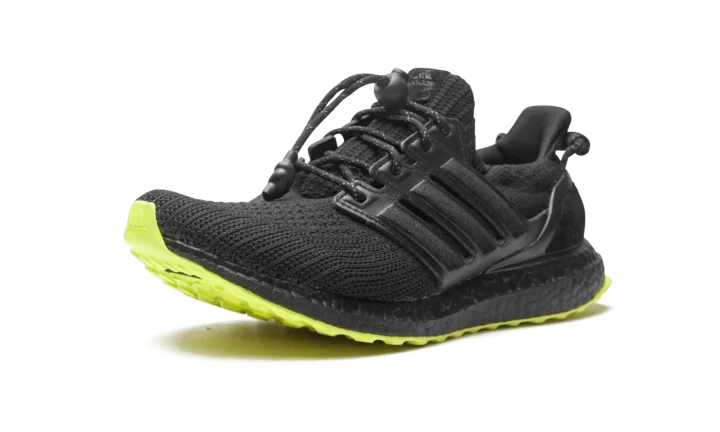The Ivy Park x adidas Ultra Boost "Black/Hi-Res Yellow" is a November 2020 collaboration between Beyonce's Ivy Park sportswear line and adidas on the supremely comfortable low-top shoe. Debuting in January 2020, the first Ivy Park collection from Beyonce and adidas reimagined gender-neutral sportswear staples like hooded sweatshirts, jogger pants, and, yes, several adidas shoes, in lifestyle adjacent colors and designs. Ivy Park remains one of the most popular artist x sneaker brand collaborations in streetwear to this day. Here, on the "Black/Hi-Res Yellow," an all-black Primeknit upper highlights the look. The tonal leather midfoot "cage" features Three Stripes branding and assists in supporting the drawcord lacing system. Tonal "Ivy Park" branding can be found on the lateral side of the black molded heel counter. The black painted Boost midsole is contrasted by a neon yellow Continental Rubber outsole to round out the look of yet another desirable footwear collaboration between Beyonce and adidas.