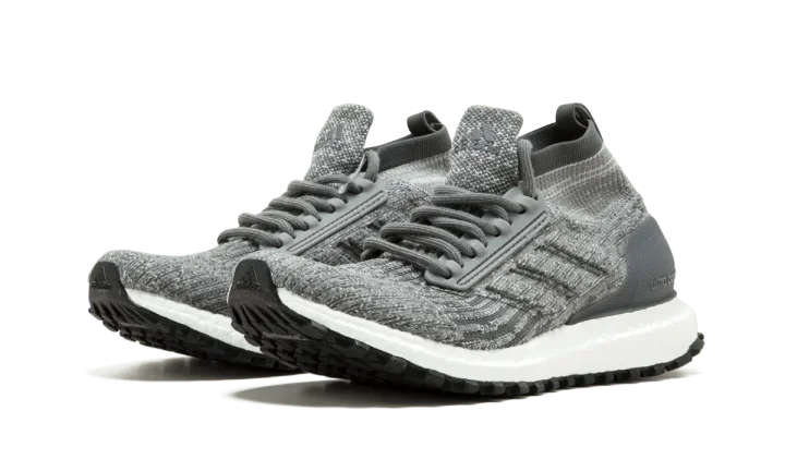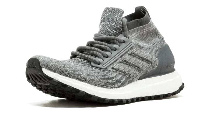 The adidas UltraBoost ATR Mid kid's shoe mimics the rugged adult version of the popular UltraBoost model from 2017. Built with a tougher all-terrain exterior and bulky Continental rubber sole, the shoe is also comprised of updated details, including a higher ankle collar, TPU Three Stripes underlays, and reinforced eyelets. A light and dark grey Primeknit upper wraps the foot, while the adidas UltraBoost ATR Mid gets its superior cushioning from the full-length Boost midsole.