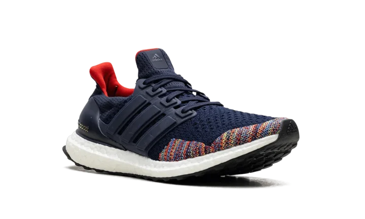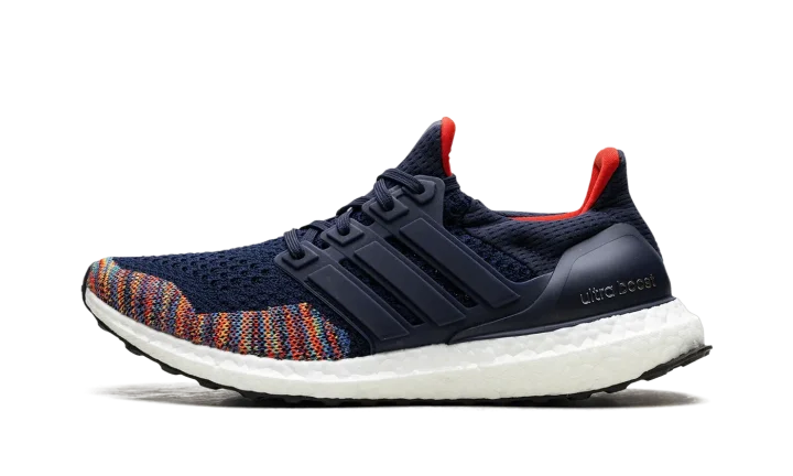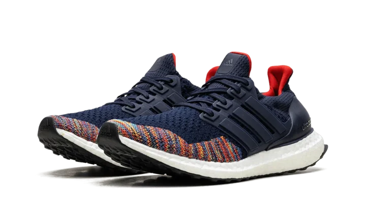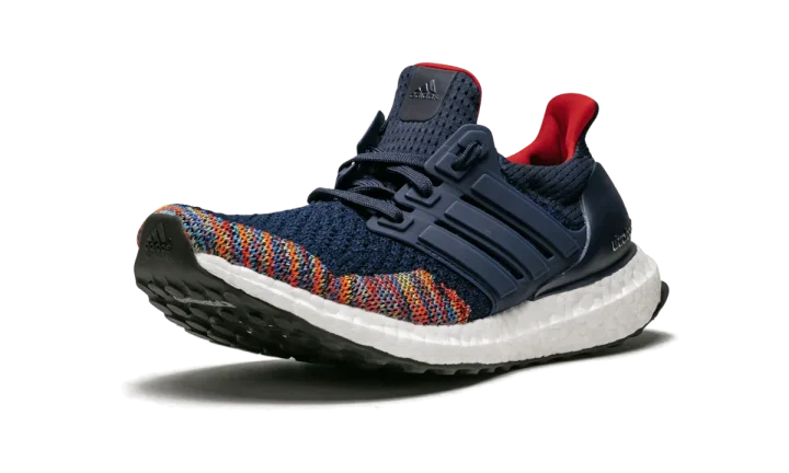In 2018, the Adidas UltraBoost LTD "White Multicolor" was brought back following its original launch three years prior, a time when the model saw extreme popularity among sneaker fans. As one of the original UltraBoost colorways, the sneaker features a rich navy blue Primeknit upper with matching Three Stripes. What makes the sneaker's presence known is the multi-colored hit that wraps around the toe. Finishing off the Adidas UltraBoost LTD is the brand's signature stark-white Boost midsole and black outsole.