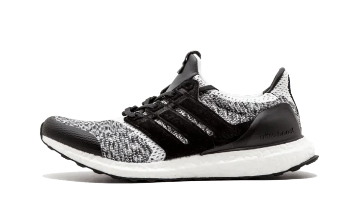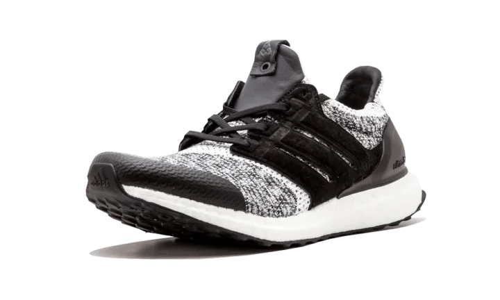 The adidas Consortium Sneaker Exchange brought together Sweden's Sneakersnstuff and North Carolina's Social Status to create an Ultra Boost and Superstar Boost combo pack. Here we focus on the former, a Footwear White and Black-colored sneaker with a woven Primeknit upper. Premium black leather detailing appears on the tongue and collar, while soft suede occupies the Three Stripes branding on the caging system. A taped toe for extra durability, along with the patented Boost midsole wraps up the lookSNS x Social Status
