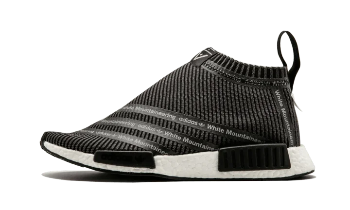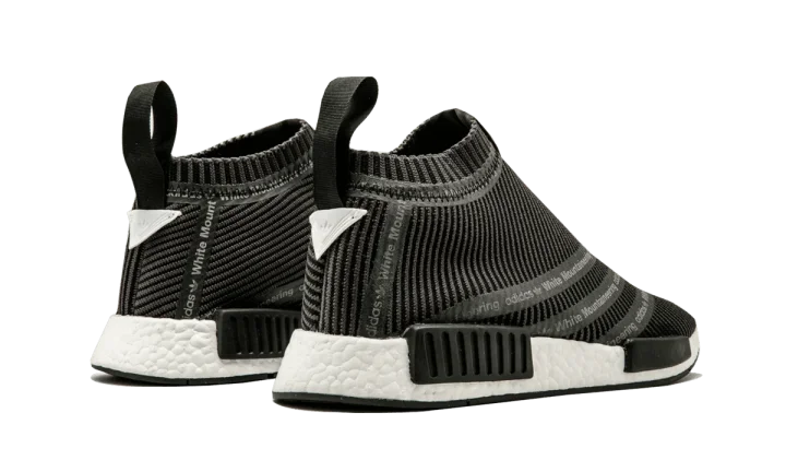 Smart, simple design defines the White Mountaineering x adidas NMD City Sock. The first-ever three-stripes branding on a NMD City Sock appears on the black Primeknit upper. The tongue and heel tape detailing are the icing on the cake.