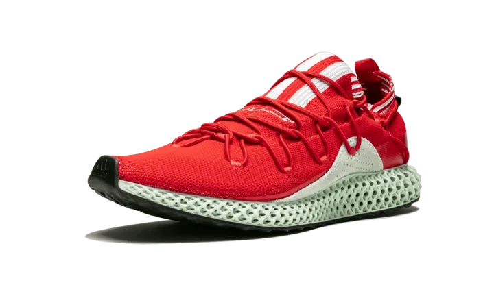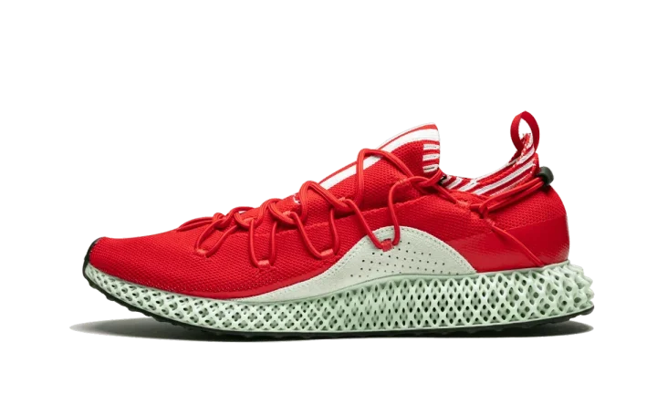 Innovative Futurecraft technology hits the high-fashion Y-3 line for this adidas Y-3 Runner 4D "Red". Yohji Yamamoto's high-end imprint of adidas takes advantage of the brand's groundbreaking 3D-printing technology and Digital Light Synthesis, a process that utilizes light and oxygen, to create the Y-3 Runner's intricate midsole. The Y-3 Runner 4D features a sleek Primeknit upper with a unique lacing system and contrasting 3-Stripe branding on the top of the shoe in white. Yohji Yamamoto's signature is embroidered below the stripes, while additional white detailing wraps around the elastic collar. Perforated suede paneling is also included at the midfoot, in a light green shade that matches the signature hue of the 4D sole unit. The limited edition adidas Y-3 Runner 4D "Red" released in January 2019.