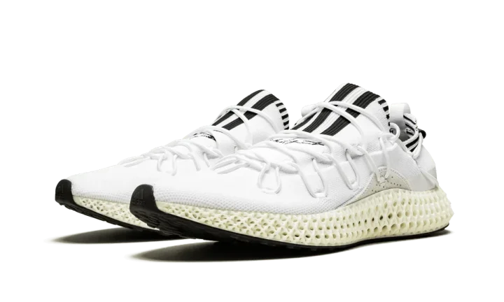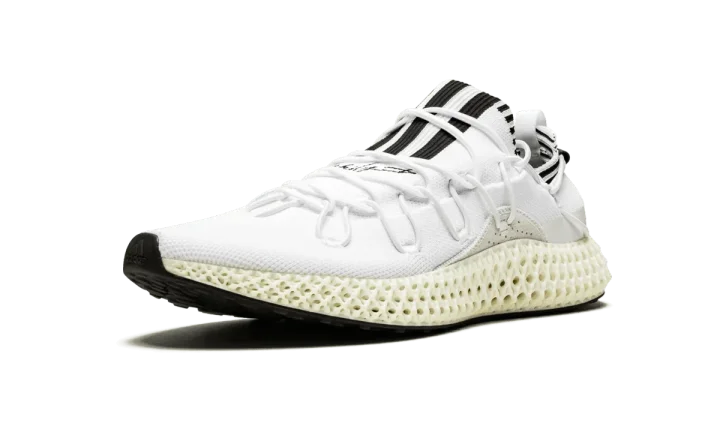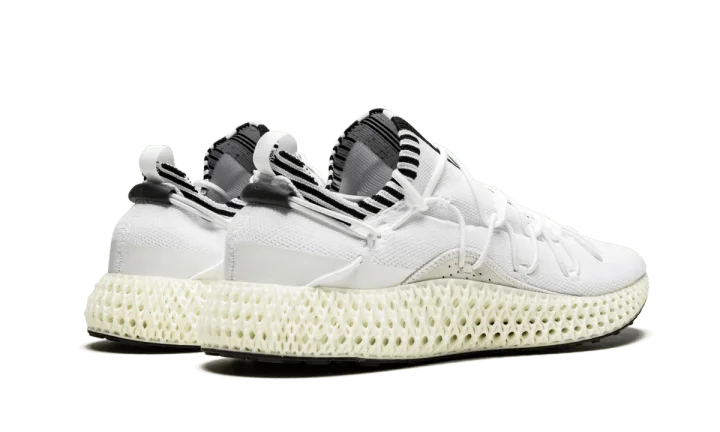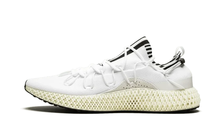 The adidas Y-3 Runner 4D II "White" is famed designer Yohji Yamamoto's second take on the innovative 4D running shoe. This high-fashion-meets-performance sneaker features a bright white one-piece Primeknit upper with black striping details on the tongue and collar area, along with Yamamoto's signature embroidered on the top of the foot. The upper also features a unique lacing system with elastic roping threaded through the Primeknit, while a small suede panel at the midfoot completed the design. Below sits the high-tech 3D-printed midsole in a cream shade and a black rubber outsole. The adidas Y-3 Runner 4D II "White" released on May 1, 2019.
