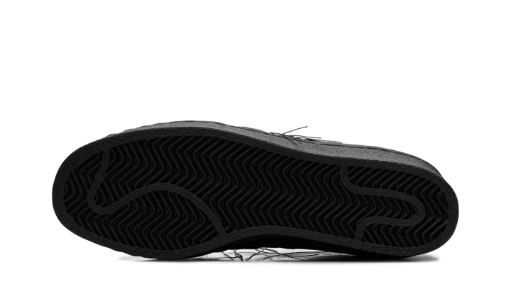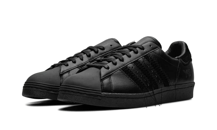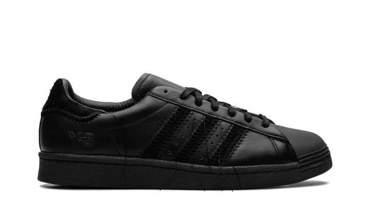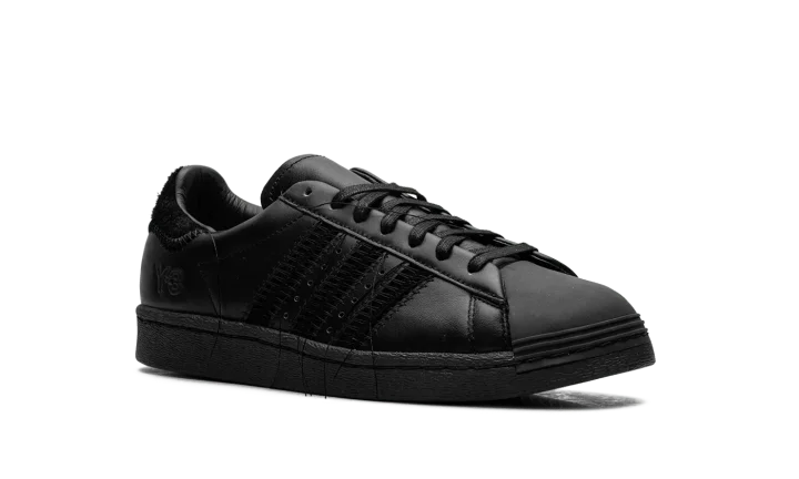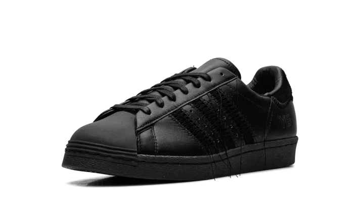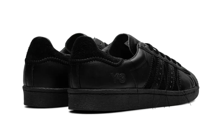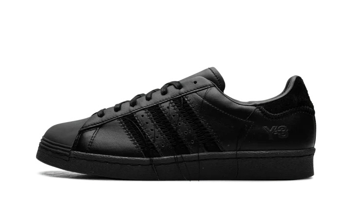 The Y-3 Superstar 'Black' shoe combines the iconic Adidas Superstar silhouette with Y-3's distinctive design, featuring a sleek all-black aesthetic.