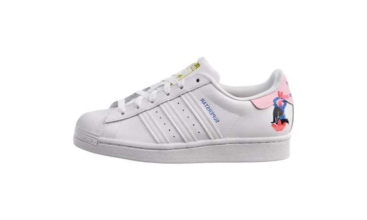 The Egle Superstar WMNS 'Cloud White / Clear Pink' shoe features a classic design with a clean white base and clear pink accents, offering a versatile and stylish addition to any sneaker collection.