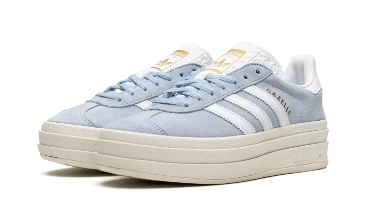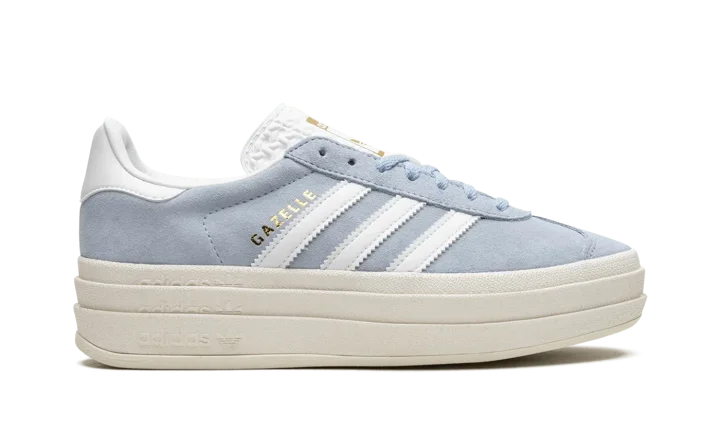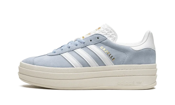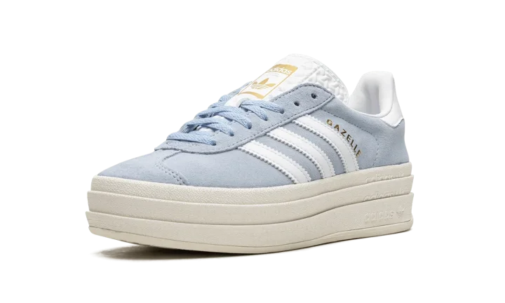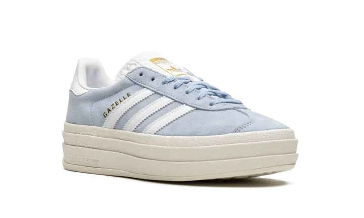 The Women's adidas Gazelle Bold "Clear Sky Blue" is a women's-exclusive colorway of the alternate version of the retro sneaker with an exaggerated platform-style sole. A contemporary spin on the adidas Gazelle, the model's Bold edition turns heads with a raised sole that provides significant height to the wearer. As for the rest of the design, the shoe features a Clear Sky Blue suede upper with white leather Three Stripes on the sides. Gold "Gazelle" branding is seen on the lateral side of the shoe. A gold "adidas Gazelle" logo lands on the tongue.