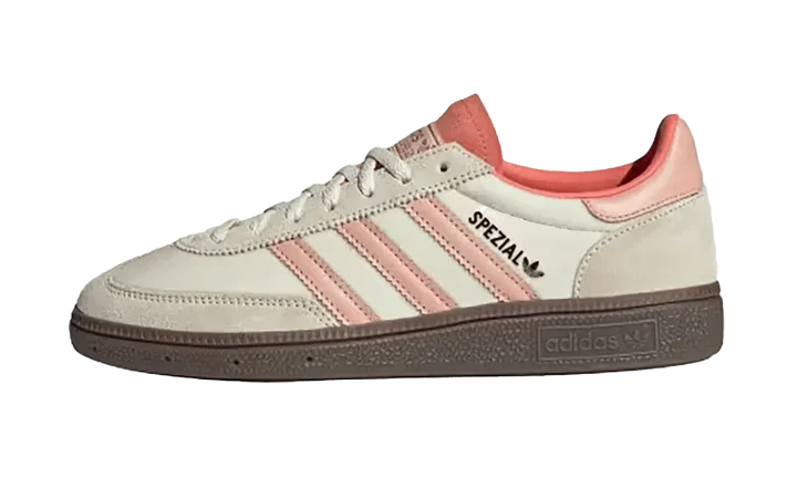 Step into a world of luxe texture with the Adidas Handball Spezial Wmns "Velvet Pack Cream / Coral". This celebrated women's sneaker features a soft cream velvet upper complemented by striking coral accents and a classic gum sole. It delivers a comfortable fit and a versatile look that's perfect for making a sophisticated statement every day.