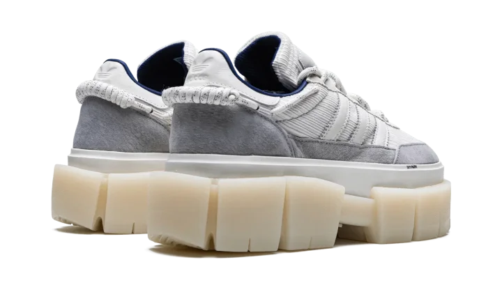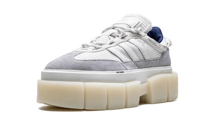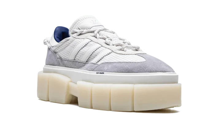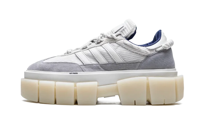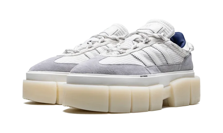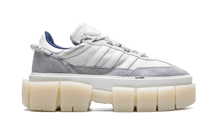 The Ivy Park x adidas Super Sleek Chunky "Halls of Ivy" is a collaboration between Beyonce's activewear line and adidas that updates the lifestyle shoe with a raised platform sole and other special details. From December 2021, the "Halls of Ivy" represents the fifth collaboration between Beyonce and adidas. In spite of its exaggerated sole, the "Halls of Ivy" features a low-key look, with an off-white-colored corduroy upper matched with tonal leather Three Stripes branding. A boat-shoe-like lacing system gives the retro inspired low-top a unique appearance. An exaggerated, semi-translucent gum rubber midsole gives the Super Sleek Chunky a platform style design.