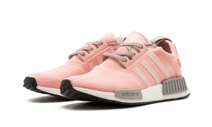 UK retailer Office and their lifestyle offshoot Offspring delivered two colorways of the adidas NMD_R1 in women's sizes. This version features pink color-blocking with light grey accents on the plugs in the Boost midsole and the heel tab.