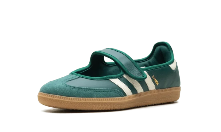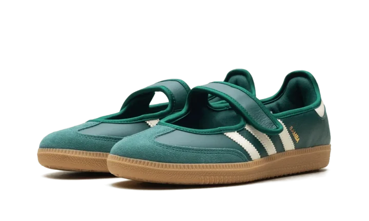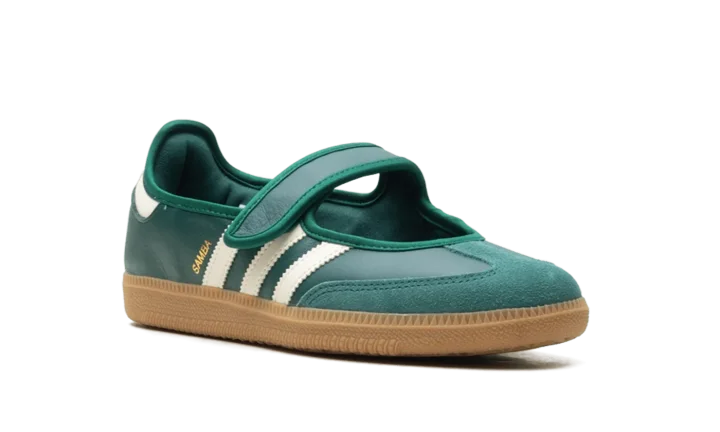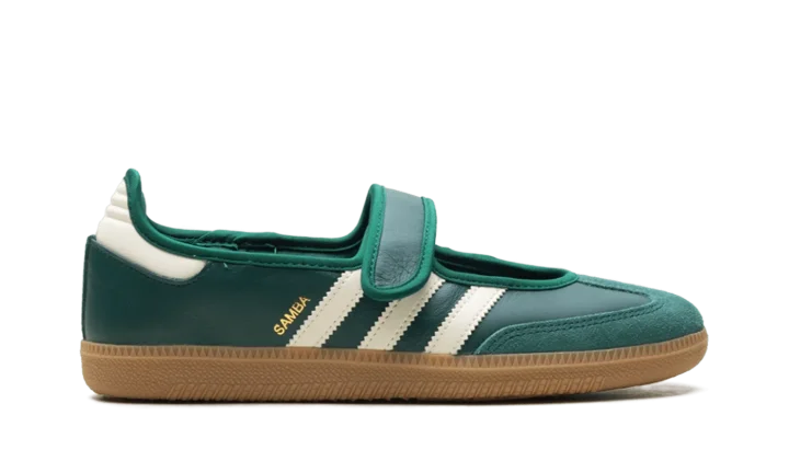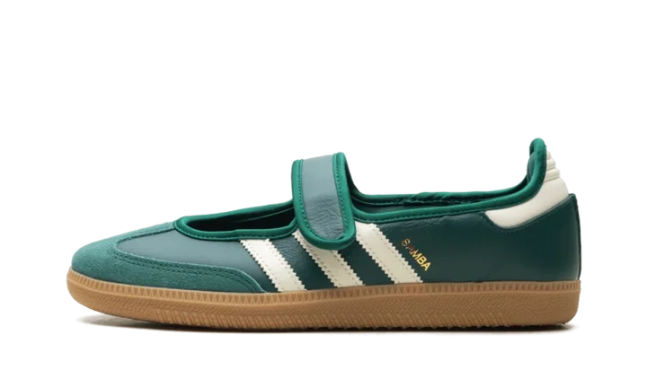 Step into a fresh take on a classic with the Adidas Samba Jane Wmns "Green / White / Gum". This women's sneaker re-imagines the Samba silhouette with an elevated design. Featuring a clean green upper with striking white accents and a gum sole, it delivers a comfortable fit and a versatile look that's perfect for making a stylish statement every day.