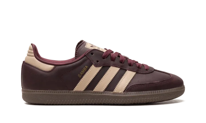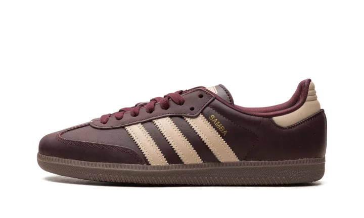 The Adidas Samba OG WMNS "Maroon Crystal" is a stylish and sophisticated reimagining of the iconic Samba silhouette.