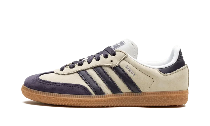 The adidas Samba OG "Putty Grey" is a colorway of the classic sneaker with a two-tone, grey-and-black design. The upper features a Putty Grey leather construction with a black leather overlay on the toe to match the black leather Three Stripes branding found on the sides. "Samba" detailing appears on the lateral side of the shoe and an "adidas Samba" patch can be found on the tongue. Underfoot, a gum rubber sole completes the unique colorway.