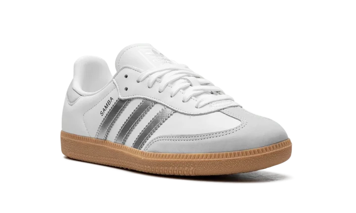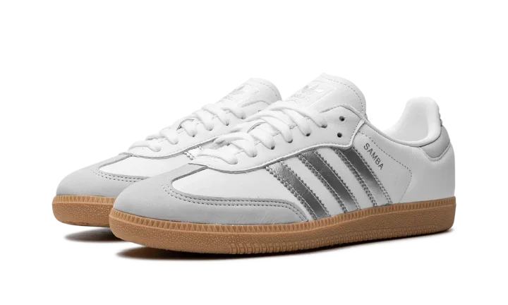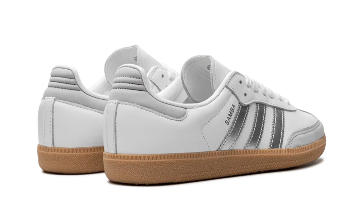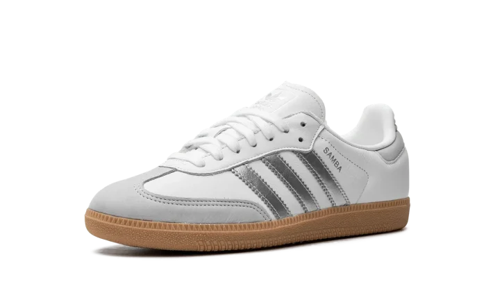 Step into a sleek, modern aesthetic with the Adidas Samba OG Wmns "White / Silver Metallic / Grey". This celebrated women's sneaker features a clean white leather upper accented by a shimmering Silver Metallic Three Stripes. Enjoy superior cushioning and a design that's perfect for making a stylish statement with a subtle futuristic twist.