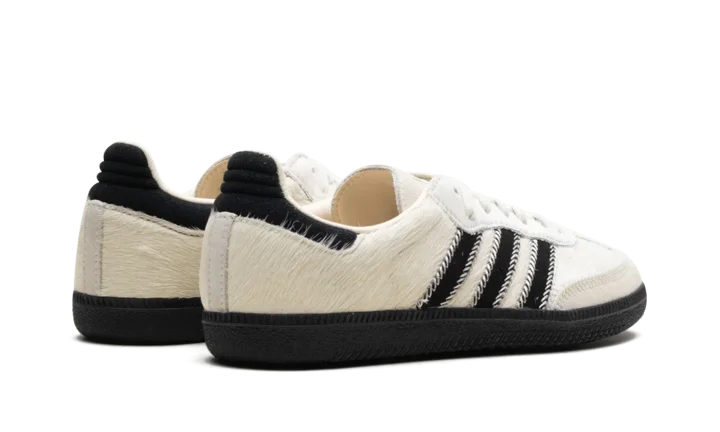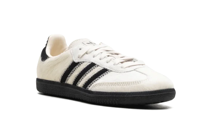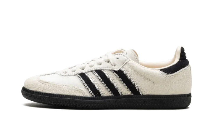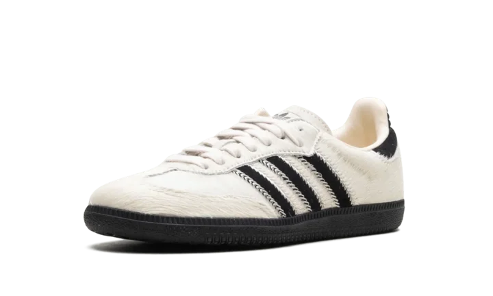 Step out in style with the SAMBA OG WMNS in WONDER WHITE BLACK PONY. These sneakers offer a fresh take on a classic, blending timeless design with a touch of modern flair. The "Wonder White Black Pony" colorway provides a unique and eye-catching aesthetic, perfect for elevating your everyday look. Experience comfortable wearability and versatile style with these iconic sneakers.