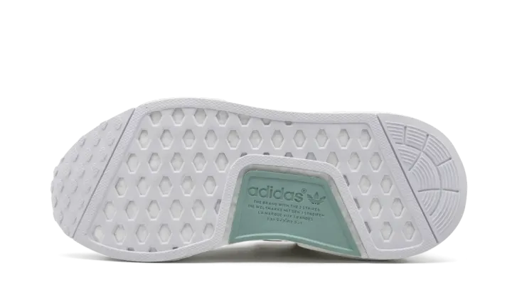 adidas put a fresh look on this women's edition of the on-the-go NMD runner. The new upper design is split, with tight-knit vamp and toe and a looser knit around the heel. This clean white colorway features a beige midsole stabilizer and suede heel strap, with a turquoise heel counter for a finishing accent.