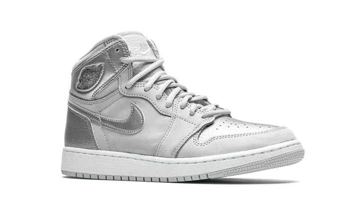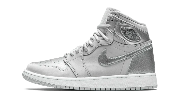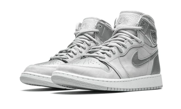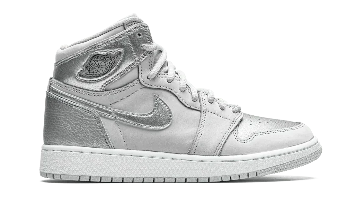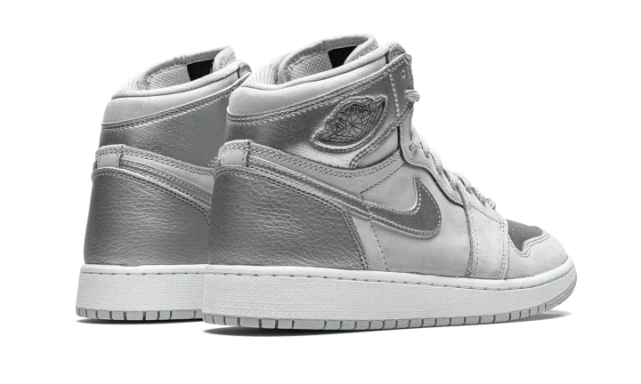 The Air Jordan 1 Co.Jp GS "Metallic Silver" is a modern reinterpretation of the limited edition, Japan-exclusive colorway that was originally released in 2001. Given a somewhat wider global release, this youth sizing of the Jordan 1 Co.Jp "Metallic Silver" now features a "Nike Air" branded tongue tag, unlike the previous version of the shoe from nearly two decades ago. The upper is dressed in a similar neutral color scheme, with grey nubuck being visible on the mid-panel, forefoot, and toe cap. Shiny Metallic Silver leather dots the perforated toe, Swoosh detailing on either side, heel, and collar. While the 2001 iteration displayed a gold accented "Wings" logo on the collar, the 2020 release features tonal "Wings" branding on the leather overlay. Embroidered "Nike Air" is stitched onto the grey tumbled leather tongue. Unique "Co.Jp" branding can be found on the insole. Release date: August 7, 2020.