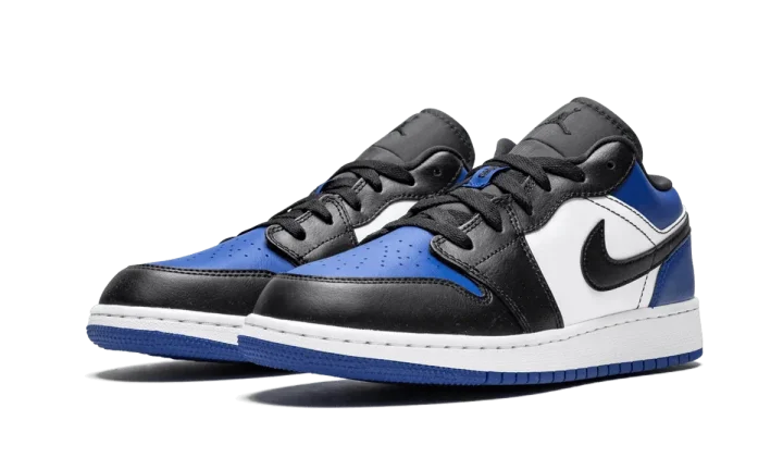 The Air Jordan 1 Low GS "Royal Toe" is the grade school sizing of the low top release of the Air Jordan 1 design that brings to mind the original "Royal" colorway as well as the ultra-rare collaboration from Fragment. The same discernible qualities of the original Air Jordan 1 design are evident in low top form. Black, white, and royal blue leather cover the upper part of the sneaker, as does a familiar black nylon tongue and royal blue toe. A stark white midsole and royal blue outsole completes the design. The Air Jordan 1 Low "Royal Toe" for kids released in summer 2019.