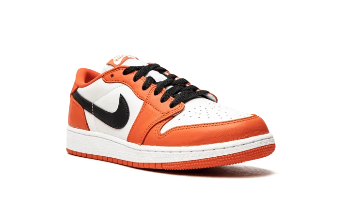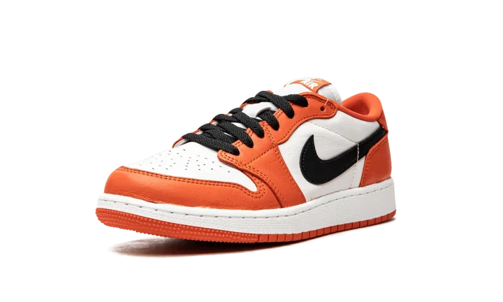 Step into a striking, vibrant look with the Air Jordan 1 Low GS "Starfish". This celebrated shoe for grade schoolers features a bold Starfish orange and white colorway on a smooth leather upper. Enjoy comfortable Air cushioning and a versatile style, perfect for making a stylish statement at school or on the streets.