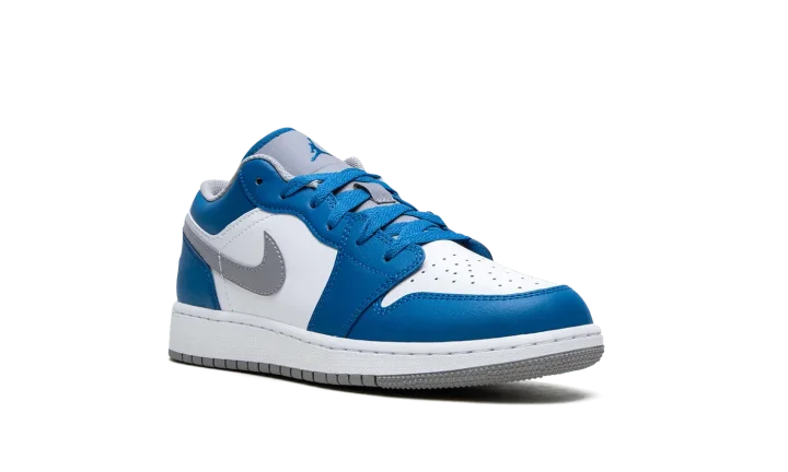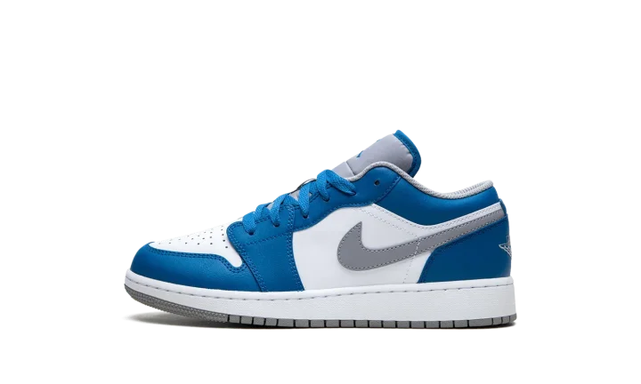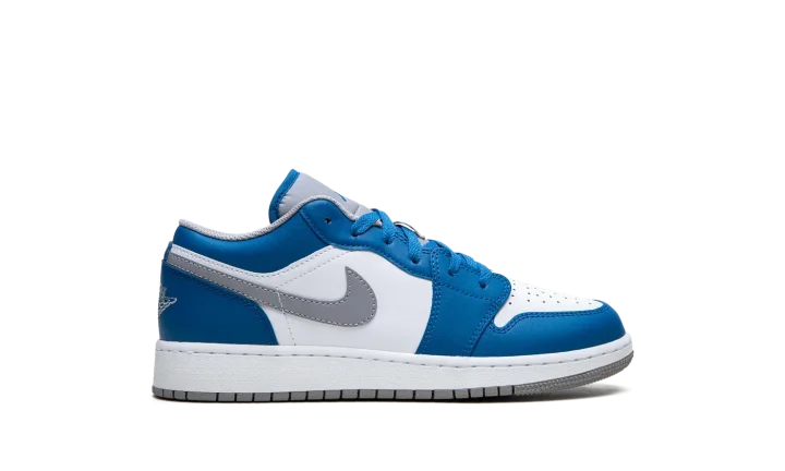 The Air Jordan 1 Low GS "True Blue" is the youth sizing of the low-top shoe that is inspired by an original Air Jordan colorway. The shoe we're referring to is the Air Jordan 3's original "True Blue" colorway that debuted in 1988. While the shoes share a nickname, they differ from each other in design. The Jordan 1 Low GS "True Blue" features a white leather construction with True Blue-colored leather on the toe cap, forefoot, and eyelets. A Cement Grey leather Swoosh is found on the sides. A grey "Wings" logo appears on the heel while a True Blue Jumpman is located on the tongue. Underfoot, a white midsole and grey rubber outsole complete the look. Release date: January 27, 2023
