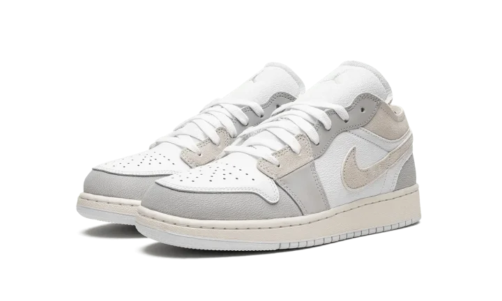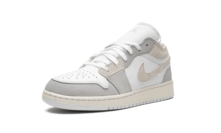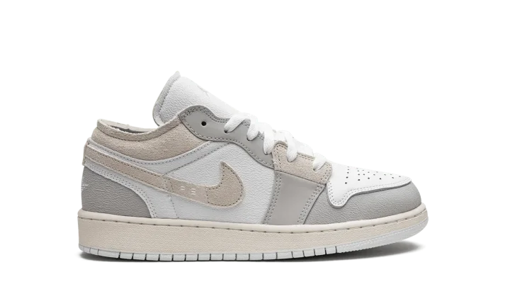 The Air Jordan 1 Low Craft GS "Tech Grey" is the youth sizing for the modified version of the classic basketball shoe made from a unique combination of materials. From Jordan and Nike's "Craft" collection of sneakers, the Jordan 1 Low Craft in "Tech Grey" features an upper constructed from a mix of leather, suede, and textiles in neutral-colored hues. The oxidized rubber midsole gives the shoe a vintage look. White leather is found on the perforated toe and mid-panel while Tech-Grey-colored smooth and textured leather appears on the forefoot and eyelets and toe cap and heel, respectively. Release date: April 14, 2023