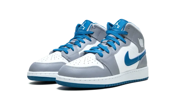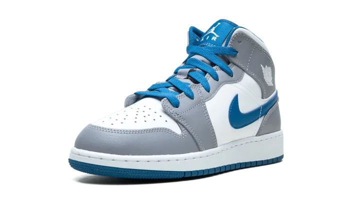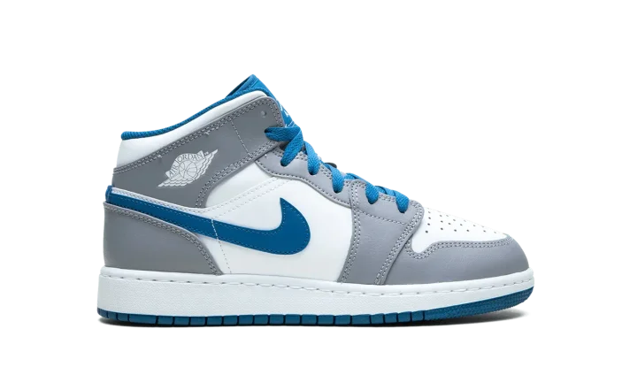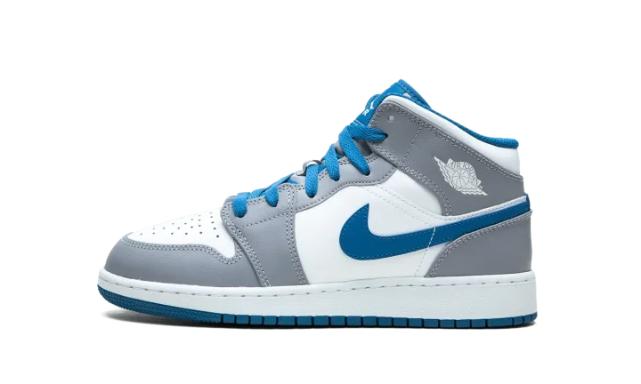 The Air Jordan 1 Mid GS "Cement/True Blue" is the youth sizing of the casual sneaker in a colorway that nods to Jordan Brand's history. The "Cement/True Blue" is loosely inspired by the classic Air Jordan 3 "Cement" theme as well as the model's "True Blue" color story. As you can see, the shoe culls inspiration from both colorways. The upper features a white leather base contrasted with Cement-colored leather overlays. A True Blue leather Swoosh logo appears on both sides of the shoe. The eye-pleasing shade of blue can also be found on the laces and nylon tongue. It also lands on the rubber outsole beneath the white rubber midsole. Release date: January 16, 2023