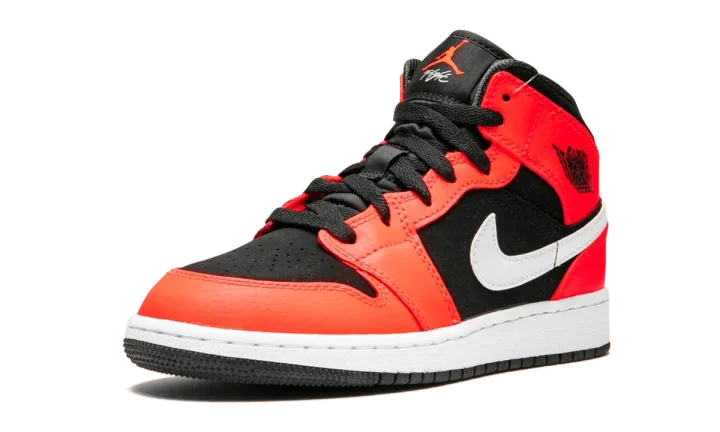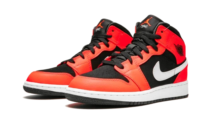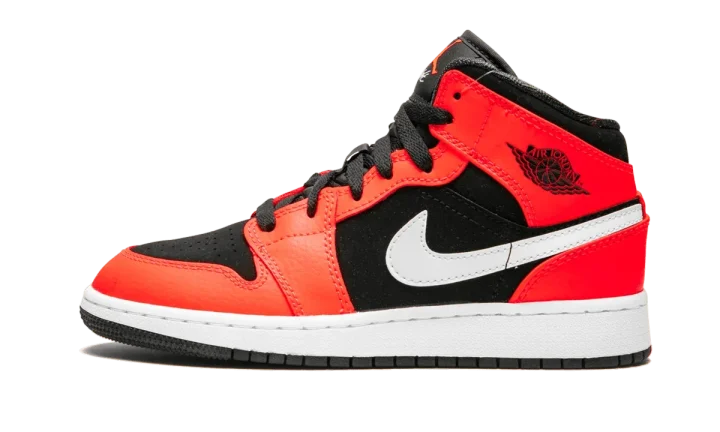 Supplied by a premier sneaker marketplace dealing with unworn, already sold out, in demand rarities. Each product is rigorously inspected by experienced experts guaranteeing authenticity. The Air Jordan 1 Mid gives lets kids lace up their own version of Michael Jordan's first signature shoe. Black textured leather serves as the base, while bright infrared overlays accent the Jordan 1 sneaker. The large Nike Swoosh comes in white, along with a Jumpman logo on the tongue and the Jordan "wings" logo embossed in black. The Air Jordan 1 Mid GS lifestyle sneaker delivers the old-school sneaker to a new generation of fans.