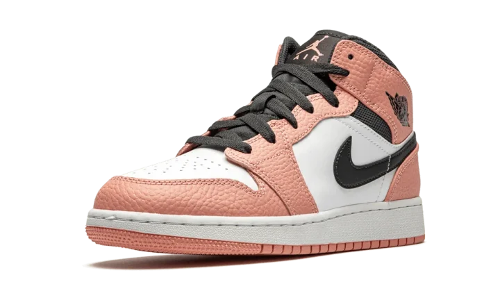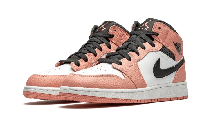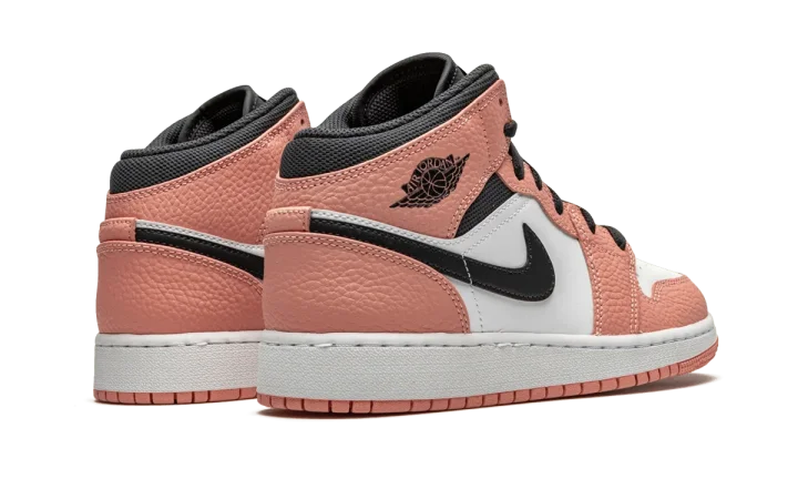 The Air Jordan 1 Mid GS "Pink Quartz" is the youth sizing of the mid-top version of one of the most popular shoes of all time. The soothing colorway features pebbled Pink Quartz leather on the toe cap, collar, and heel. A clean white leather base comprises the perforated toe and mid-panel. Classic branding, like the Swoosh and Wings logo on the collar, add a nostalgic touch to the shoe. The Air Jordan 1 Mid in grade school sizing is finished off with contrasting black cotton laces, a white midsole, and light pink outsole.