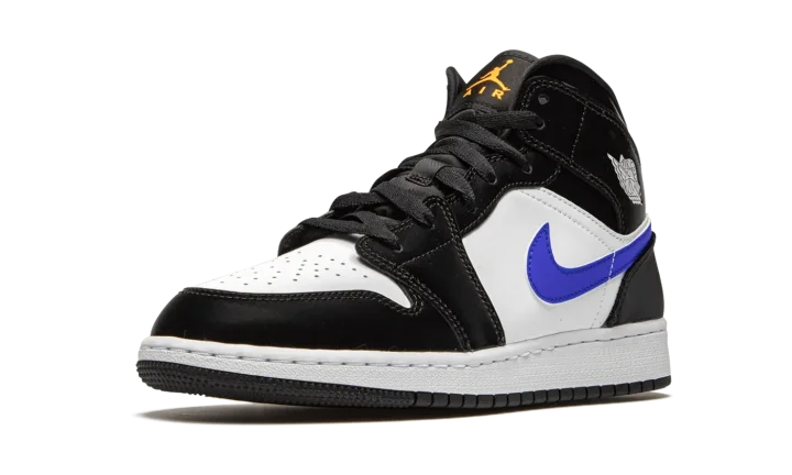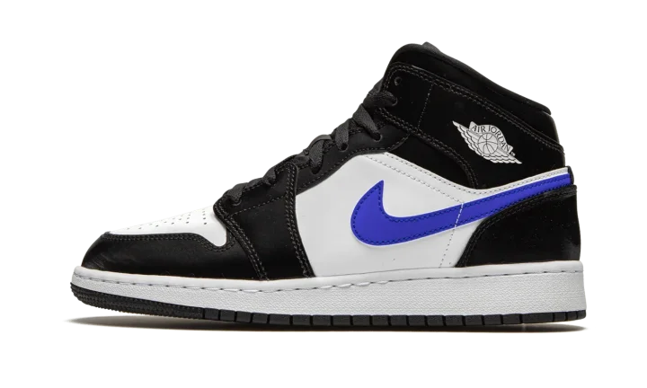 The Air Jordan 1 Mid GS "Racer Blue" is the youth sizing of Michael Jordan's first signature shoe in an easy-to-wear design for kids. The Jordan 1 Mid has become a go-to option over the years as its casual and classic design pairs well with a variety of different clothing styles. Here, Jordan Brand stays true to the sentiment as it places white leather on the perforated toe and mid-panel. Overlays on the forefoot, eyelets, collar, and heel feature a contrasting black synthetic nubuck material to offset the look. The shoe gets its nickname from the Racer Blue leather Swoosh found on either side. On the collar, white "Wings" detailing offers a classic design consistent with the original look of the Air Jordan 1. An orange accented Jumpman on the black nylon tongue tag tops off the look.