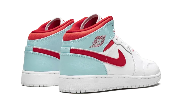 The Air Jordan 1 Mid "Ice Blue" is available exclusively for girls. Starting with a crisp white tumbled leather base, the iconic sneaker opts for ice blue and red in the details. Most of the colorful accents take place at the rear of the shoe, while two-toned red-and-white laces handle the color up front. The sneaker keeps things classic with an all white midsole on the bottom. Finally, the rubber sole of the Air Jordan 1 has a dynamic pivot circle that delivers durable traction.