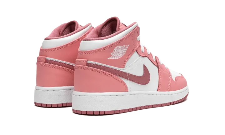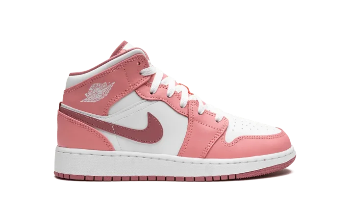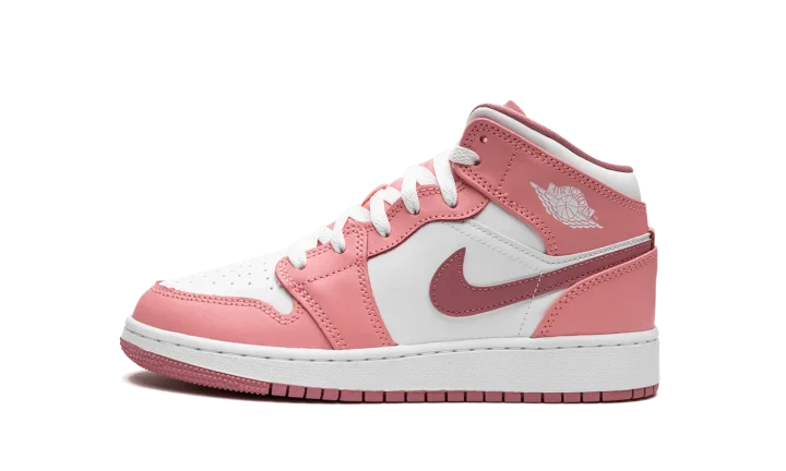 The Air Jordan 1 Mid GS "Valentine's Day" is the youth sizing of the casual sneaker in a colorway inspired by the February holiday. The shoe is complete with a white leather base contrasted with pink leather overlays. A slightly darker shade of pink leather is used on the Swoosh logo on either side of the shoe. A white "Wings" logo can be found on the collar and a Jumpman appears on the tongue tag. Underfoot, a white rubber midsole and pink outsole complete the look. Release date: March 21, 2023