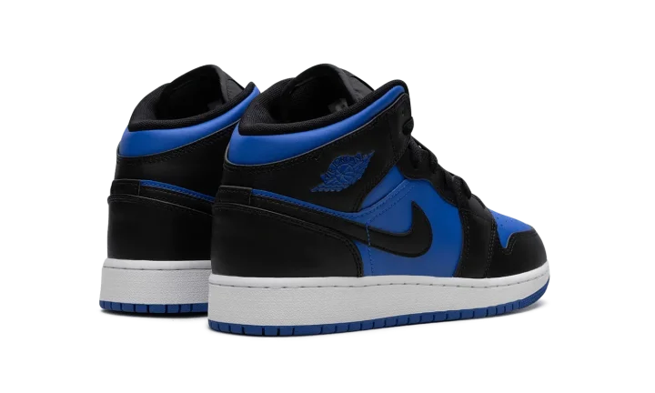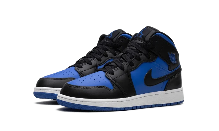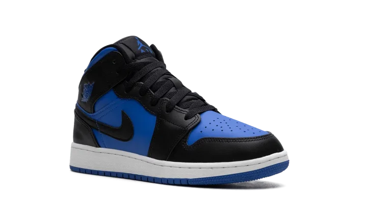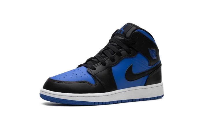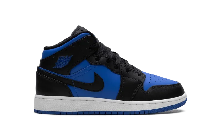 The Air Jordan 1 Mid GS "Varsity Royal" is the youth sizing of the colorway of the lifestyle sneaker with a classic appearance. Inspired loosely by the Air Jordan 1's original "Royal" colorway, the "Varsity Royal" Jordan 1 Mid features royal blue leather on the perforated toe, mid-panel, and collar. Contrasting black leather overlays and a black leather Swoosh balance the look. A Varsity Royal "Wings" logo can be seen on the collar while a Varsity Blue Jumpman is found on the tongue tag. A white midsole and blue outsole complete the look. Release date: September 19, 2023