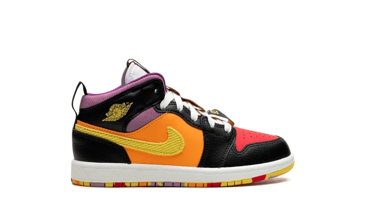 The Air Jordan 1 Mid PS "Six Championships" is the preschool sizing of the casual shoe in a colorway inspired by Michael Jordan's six NBA Championships. The "Six Championships" features the colors of the teams Jordan and the Chicago Bulls defeated to win six NBA Championships in the 1990s in a mismatched color block. The years of the Bulls' championship victories are seen on the tongue of each shoe. Classic Jumpman and "Air" detailing are found on the tongue while a "Wings" logo is seen on the collar. Underfoot, the colors of teams such as the Los Angeles Lakers, the Portland Trail Blazers, the Phoenix Suns, the Seattle SuperSonics, and the Utah Jazz are incorporated into the design of the colorful outsole. Release date: November 26, 2023
