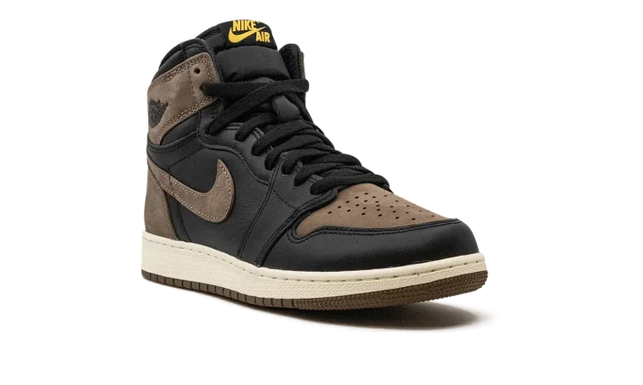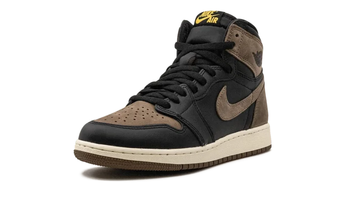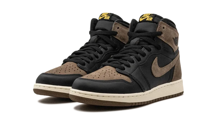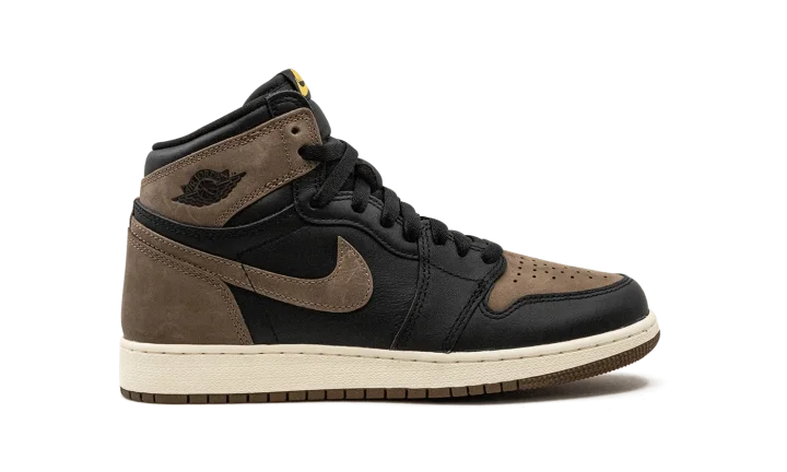 The Air Jordan 1 Retro High OG GS "Palomino" is the youth sizing of Michael Jordan's first signature shoe with versatile, earth tone details. The "Palomino" colorway of the popular retro basketball shoe features Palomino, or brown, suede on the perforated toe, collar, heel, and Swoosh. Black leather is found on the overlays and on the mid-panel. The color block is reminiscent of the Jordan 1's original "Bred" colorway. As for the rest of the design of the "Palomino," the shoe has a classic "Wings" logo on the collar and old school "Nike Air" branding on the tongue. A cream rubber midsole and brown rubber outsole complete the look. Release date: September 2, 2023