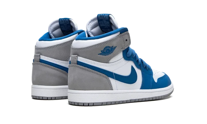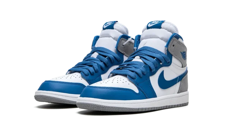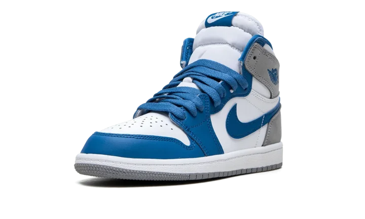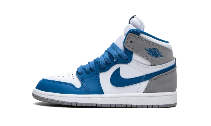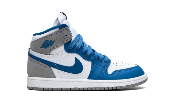 The Air Jordan 1 High OG PS "True Blue" is the preschool sizing of the retro basketball sneaker nicknamed after an original Air Jordan colorway. The shoe we're referring to is the Air Jordan 3 "True Blue" that debuted in 1988. While the Jordan 1 and Jordan 3 "True Blue" colorways differ in design, both feature an appealing shade of blue accenting. Here, the Jordan 1 "True Blue" features a white leather base with True Blue leather overlays on the toe cap, forefoot, eyelets, and Swoosh. Cement Grey leather overlays appear on the heel and on the collar overlay with classic "Wings" branding. A True Blue nylon tongue tag with "Nike" and Swoosh logos completes the look. Release date: January 14, 2023
