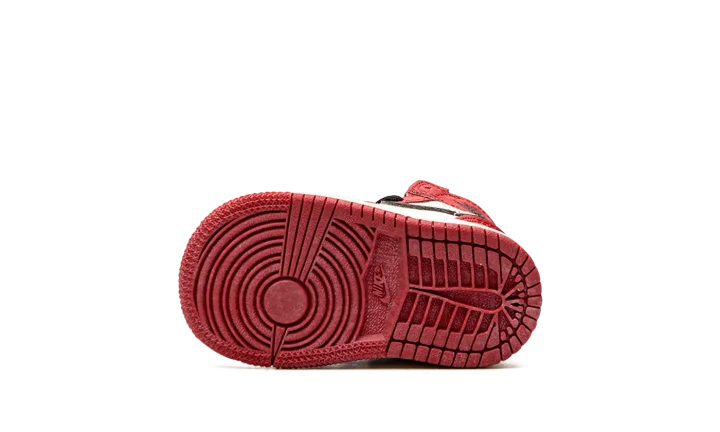 The Air Jordan 1 High TD "Lost and Found" is the toddler sizing of the re-released original colorway of the classic sneaker inspired by the model's vintage 1985 pairs. The "Lost and Found" replicates the look and feel of the debut version of the "Chicago" from the '80s. It features accurate-to-original panel shapes and colors, and an aged, vintage look. Inspiration for the theme comes from the hunt of finding the original Jordan 1 "Chicago" in mom and pop sneaker shops years after the shoe debuted. The perforated toe and mid-panel are designed in white leather. The neutral base is accented by red leather overlays. A black leather Swoosh appears on both sides of the shoe. Underfoot, a white midsole and red rubber outsole complete the look.