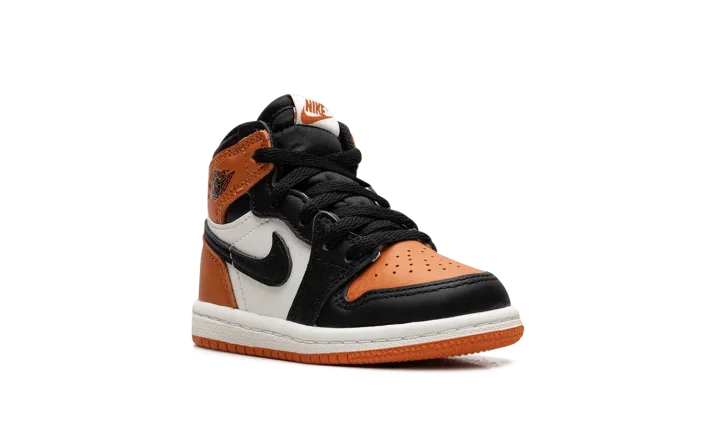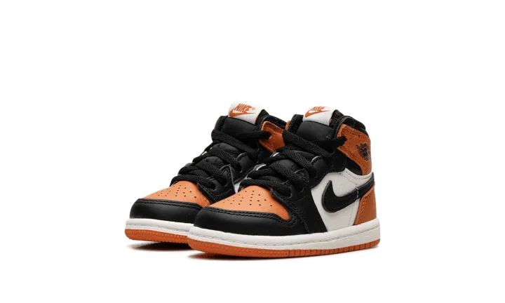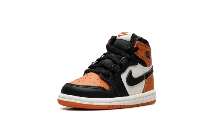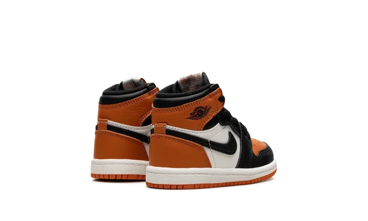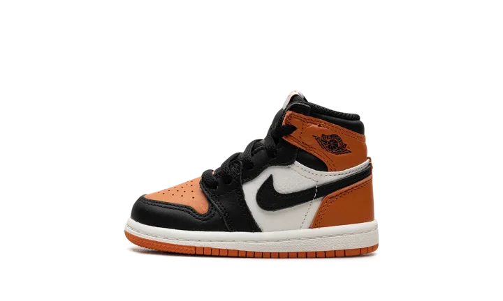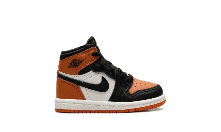 Dress your future legend in the Air Jordan 1 Retro High OG TD "Shattered Backboard." This Toddler-sized shoe celebrates Michael Jordan's legendary backboard-shattering dunk in Italy in 1985. The premium leather upper features the iconic Black, Starfish, and Sail colorway, inspired by the jersey MJ wore during the game. This high-top model is built for little feet with soft cushioning, introducing them to a piece of Jordan history and that unmatched, effortless energy.