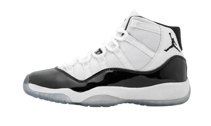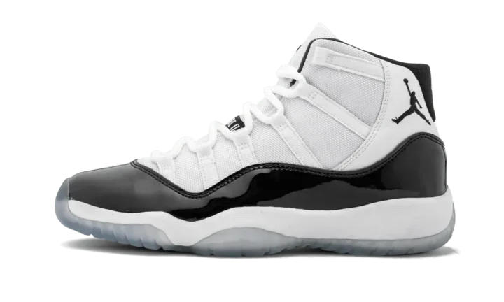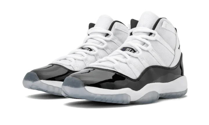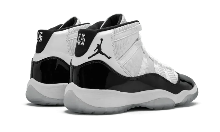 The Air Jordan 11 GS "Concord 2018" is the grade school-sized release of one of the most important sneakers of all time. This retro features the beloved design in its most accurate form since the original that Michael Jordan wore on court in 1996. The Air Jordan 11 GS "Concord 2018" features the same white ballistic mesh and leather upper with shining black patent leather construction as the men's sizing. The kids' Concord colorway also features "45" on each heel, referencing the original pair Jordan debuted in the 1995 NBA Playoffs. Michael Jordan wore number 45 when he returned to the NBA after his first retirement in 1994, and the number was on the very first pairs of the Air Jordan 11. The Air Jordan 11 GS "Concord 2018" ensures that the young Air Jordan collectors can enjoy this historic return of the silhouette.