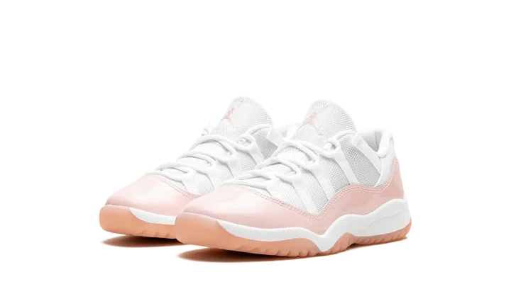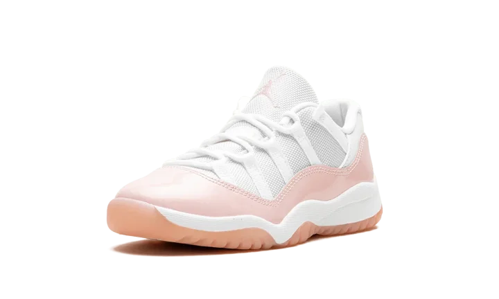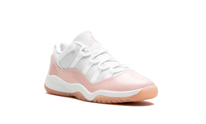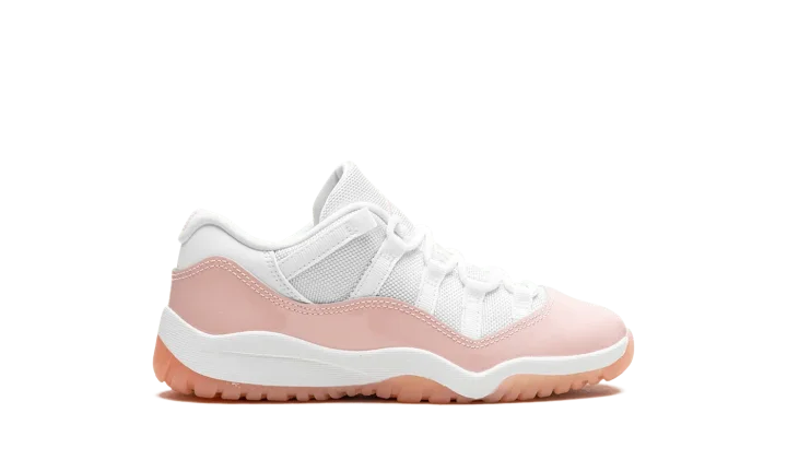 The Air Jordan 11 Low PS "Legend Pink" is the preschool sizing of Michael Jordan's eleventh signature shoe with a summer-ready design. The "Legend Pink" Jordan 11 Low has the same color block as the model's original "Concord" colorway, but with pink accenting instead of black. Specifically, the shoe features a white mesh upper and a glossy Legend Pink patent leather mudguard. A pink embroidered Jumpman and a "Jumpman Jordan" tag appear on the tongue. On the heel, more Legend Pink accenting can be found on the "23" and Jumpman logos. A semi-translucent Legend Pink rubber outsole completes the look.