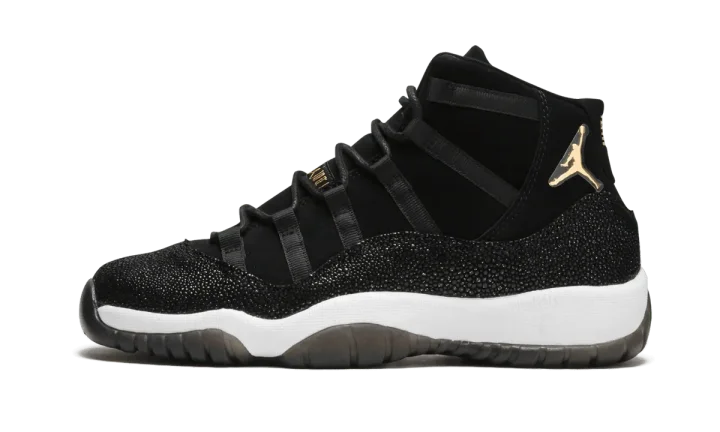Please note this sneaker is GS sizing. After the maroon velvet edition dropped during the 2016 holiday season, the premium Air Jordan 11 Heiress for women was back in 2017 for another elegant colorway. The second Air Jordan 11 Heiress designed just for the ladies features a luxurious all-black upper with stingray texture for the signature mudguard wrapping the upper, while a smoky semi-translucent outsole and metallic gold details finish them off. Making more than a few men jealous they didn't drop in their sizing, no lady Air Jordan fan should be without a pair.
