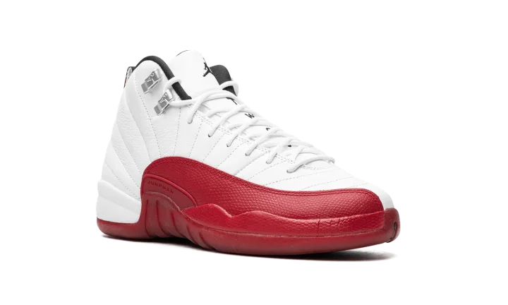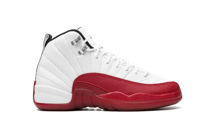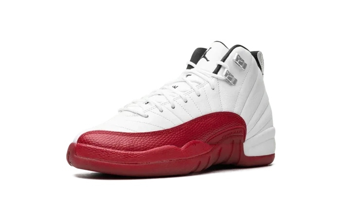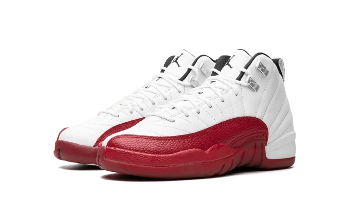 The Air Jordan 12 GS "Cherry" is the youth sizing of an original colorway of Michael Jordan's twelfth signature shoe that debuted in 1997. Worn by Jordan with the Chicago Bulls throughout the NBA's 1996-97 regular season, the Jordan 12 "Cherry" is one of the most iconic Jordan models of all time. The 2023 version of the shoe remains faithful to the original style from '97. It features a white leather construction with a Varsity Red textured mudguard/toe panel that transitions into the midsole. Silver eyelets and black Jumpman and "Two 3" detailing are found on the collar and tongue, respectively. Release date: October 28, 2023