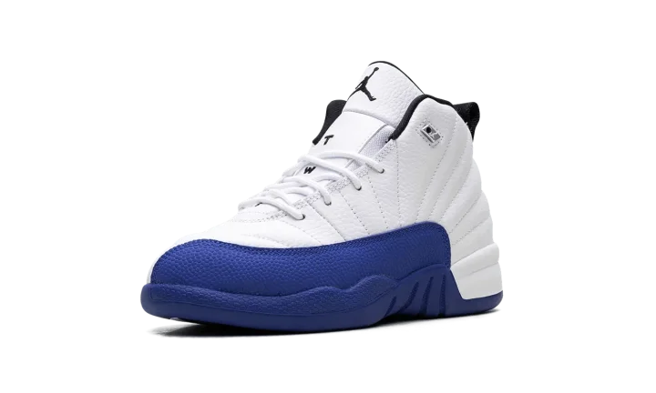 The Air Jordan 12 GS "Wizards" is the preschool sizing of the retro basketball shoe in a colorway inspired by the model's Player Exclusive style from Michael Jordan's time with the Washington Wizards. The Jordan 12 "Wizards PE" was made for Jordan to wear with the Wizards. In 2004, Jordan Brand released a revised version of the Jordan 12 "Wizards PE" called the "French Blue." In 2024, Jordan Brand once again released the Jordan 12 in a colorway inspired by both styles. Here, the shoe features a white leather upper and a Game Royal textured leather mudguard. Black Jumpman and "Two 3" branding appear on the tongue. Underfoot, a black rubber outsole completes the look. Release date: Holiday 2024