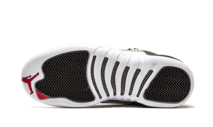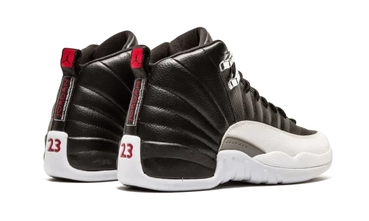 The original and iconic "Playoffs" colorway of the Air Jordan 12 in black and white leather is sized down for kids in this Grade School edition of the 2012 release.