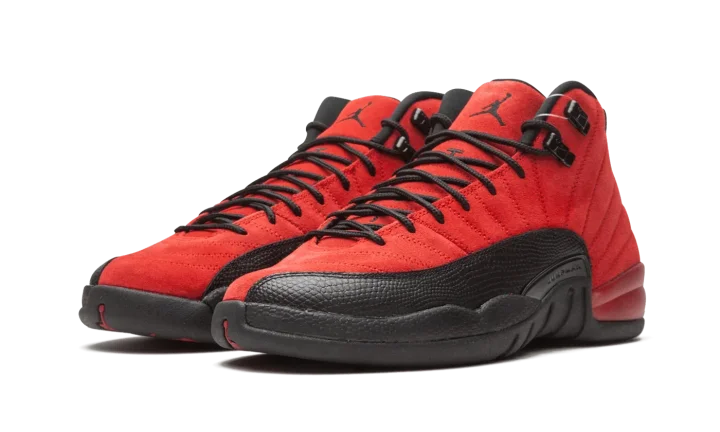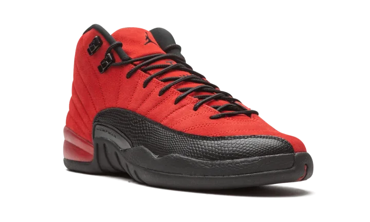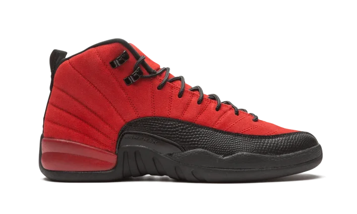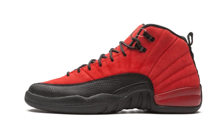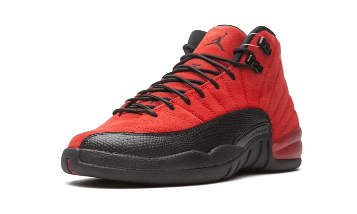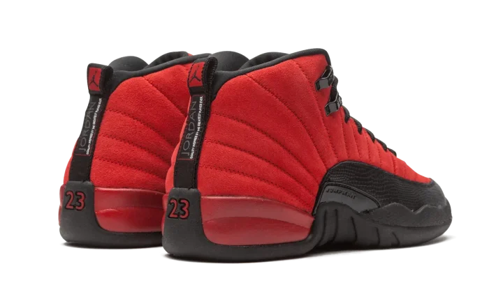 The Air Jordan 12 GS "Reverse Flu Game" is the youth sizing of Michael Jordan's twelfth signature shoe that resembles an original colorway from 1997. The "Reverse Flu Game" flips the classic black leather upper and red pebbled leather mudguard of the original Jordan 12 worn by Michael throughout the '97 NBA Playoffs, most famously during his "Flu Game" performance of Game 5 of the '97 Finals. Whereas the original "Flu Game" is complete with a leather upper, the "Reverse Flu Game" features a supple Varsity Red suede construction. The mudguard features a contrasting black pebbled leather design. Additional details, like the black rope laces that sit on top of the red suede tongue with embroidered Jumpman branding, are a call back to the original look of the Jordan 12. Under foot, Jordan Brand places two traction pods on the forefoot and heel between a carbon fiber midfoot plate for stability. Release date: December 26, 2020.