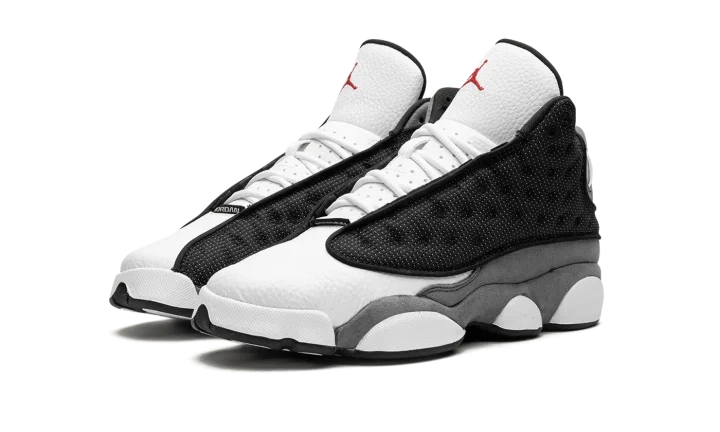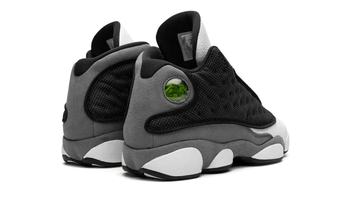 The Air Jordan 13 GS "Black Flint" is the youth sizing for the colorway of the vintage basketball shoe that is loosely inspired by one of the model's original releases. The shoe in question is the Jordan 13 "Flint," which debuted in 1998 and is one of the most popular colorways of Michael Jordan's thirteenth signature shoe. On the "Black Flint," the shoe features the same color block as its predecessor, albeit in different colors. The design is complete with a black mesh upper that's contrasted with grey suede overlays and a white leather toe. A holographic jewel appears on the lateral side of the collar. Classic Jumpman branding is found on the toe. Black rubber pods appear on the outsole mirroring that of a panther's paw, which the original Air Jordan 13 was inspired by. Release date: April 22, 2023
