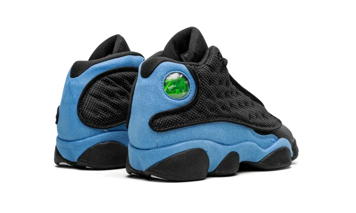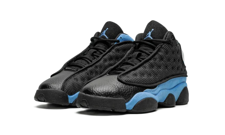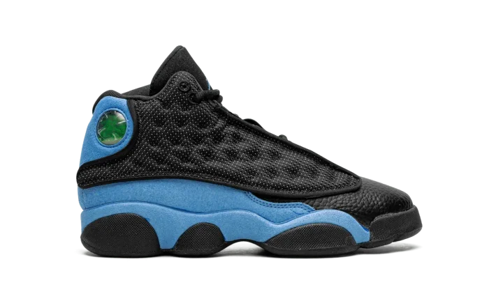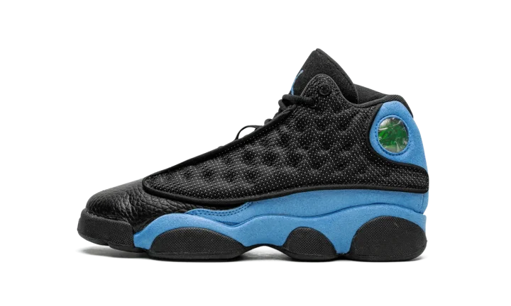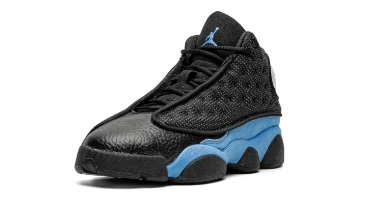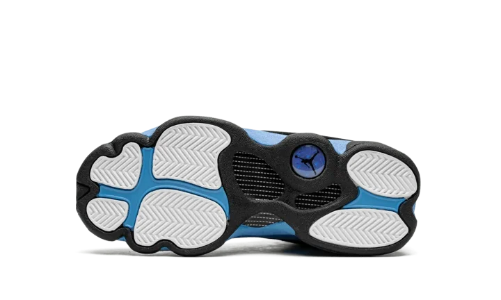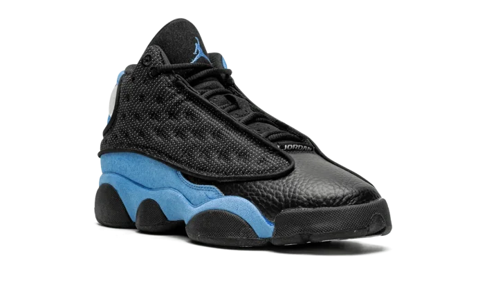 The Air Jordan 13 GS "University Blue" is the grade school youth sizing of the colorway of Michael Jordan's former signature shoe that is inspired by his alma mater, the University of North Carolina. The Jordan 13's "University Blue" colorway shows love for the UNC Tar Heels by incorporating its signature light blue hue onto its design. The shoe features a dot-embroidered black mesh upper that's contrasted with University Blue suede overlays. The Jordan 13's signature holographic panther eye emblem appears on the lateral side of the shoe. A University Blue Jumpman is embroidered on the black leather tongue. Black midsole walls complete the look. Release date: December 23, 2022