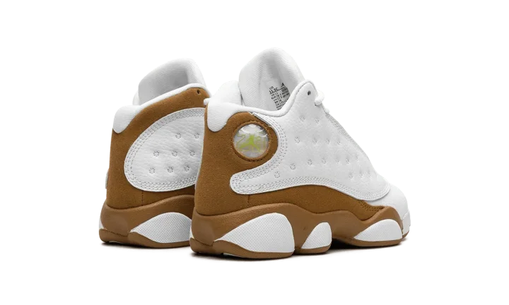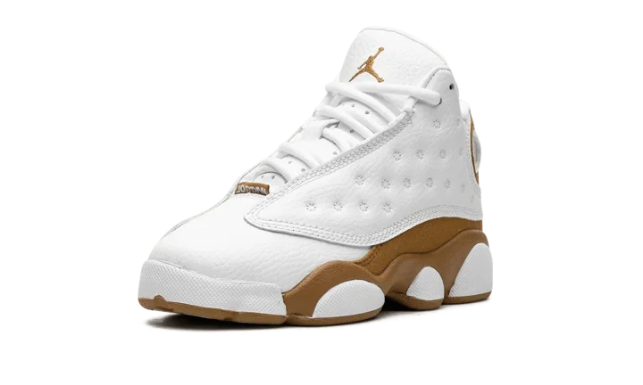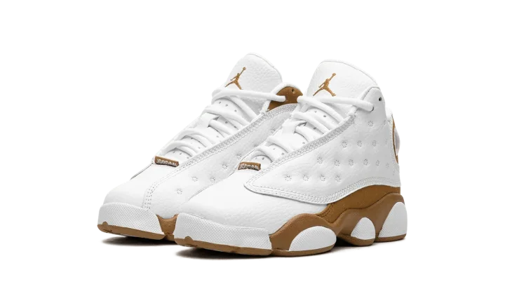 The Air Jordan 13 PS "Wheat" is the preschool sizing of the modern re-release of the colorway of the retro basketball shoe that debuted in 2004. The "Wheat" Jordan 13 was one of the retro sneaker's first "lifestyle" colorways and certainly one of its most popular back in the day. Just like the original release, the 2023 version of the Jordan 13 "Wheat" is complete with a white dotted leather upper with a white leather toe. A Wheat suede panel wraps the heel and midfoot. More Wheat accenting appears on the midsole walls and rubber outsole. The final hit of Wheat detailing is seen on the Jumpman on the tongue. A holographic emblem on the ankle completes the look. Release date: November 21, 2023