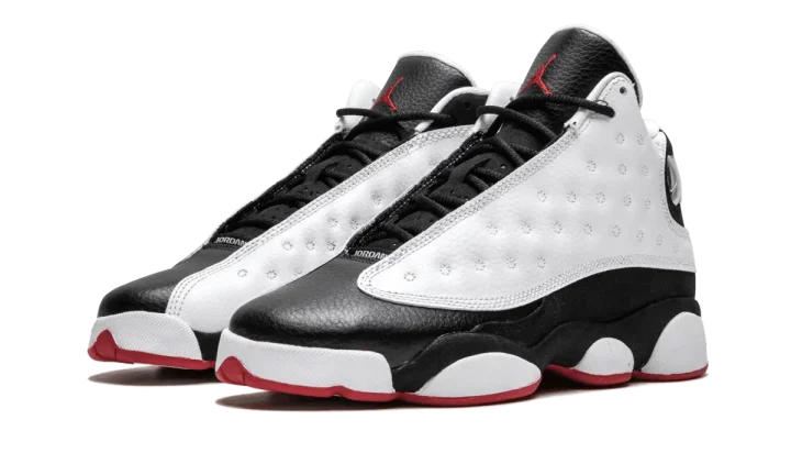 The Air Jordan 13 GS "He Got Game" is the children's-sized version of the 2018 release of the iconic colorway. This original colorway of the Air Jordan 13 in white and black leather with red accents was worn on court by Michael Jordan in 1998, and received the "He Got Game" nickname after appearing in the classic Spike Lee basketball film starring Ray Allen and Denzel Washington. The 2018 retro edition brings the colorway back in perfect detail, featuring a high quality leather upper and the signature holographic logo jewel on the heel. The kids' Air Jordan 13 "He Got Game" is a must-have for an young Air Jordan collector.