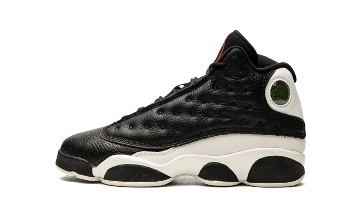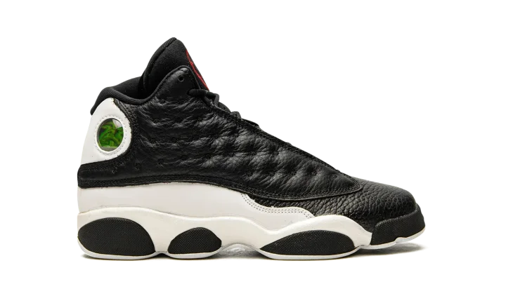 The Air Jordan 13 GS "Reverse He Got Game" is the youth sizing of Michael Jordan's thirteenth signature model in a look inspired by the original white and black colorway. Known for its cameo appearance in Spike Lee's landmark basketball film "He Got Game," the original white and black Jordan 13 is flipped" for a predominantly black upper with white accents. Black quilted leather now covers the upper while the mudguard and heel takes on a stark white appearance. A green-tinted holographic window appears near the collar with an embroidered red Jumpman logo on the tongue giving the shoe true-to-original styling. Release date: January 11, 2020.