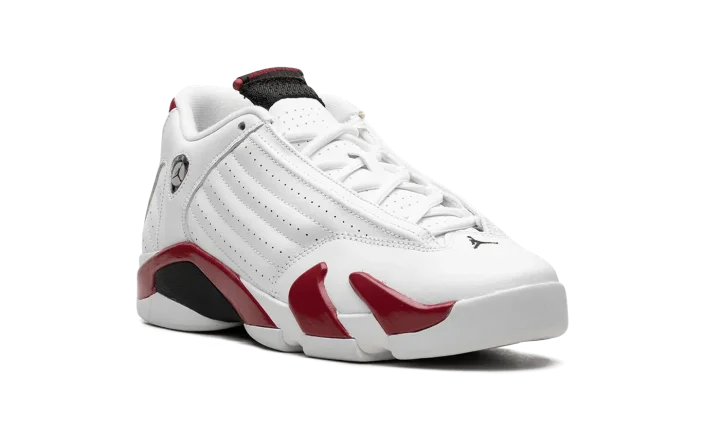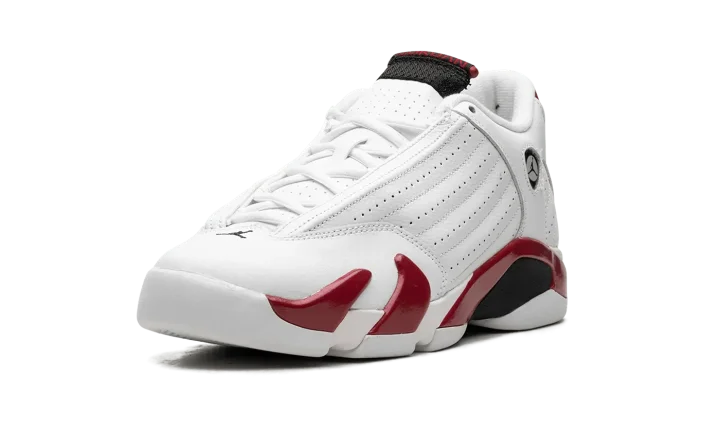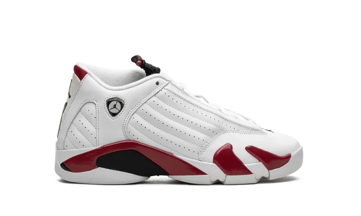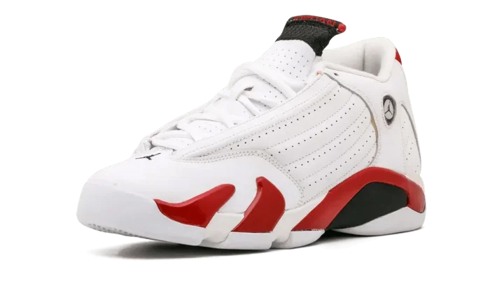 Here we have the retro edition of the original Air Jordan 14 in its iconic white and red color scheme. Michael Jordan may have never worn this colorway on the court in an NBA game, but that makes it no less essential to any Air Jordan collection. This listing is for Grade School sizing.