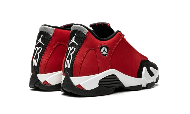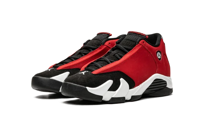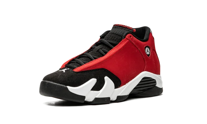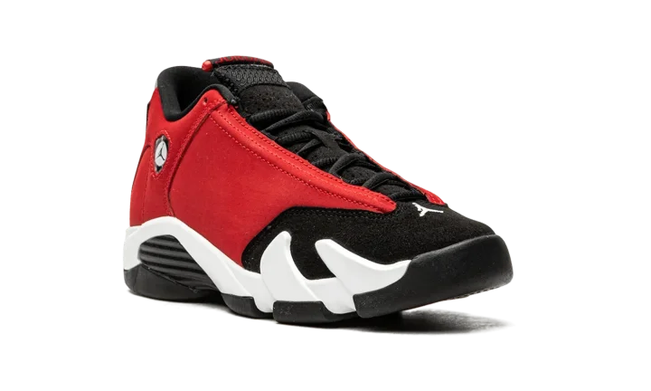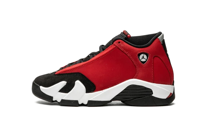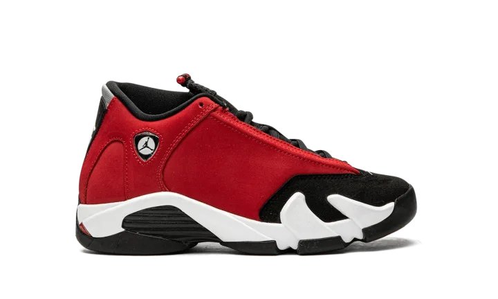 The Air Jordan 14 GS "Gym Red" is the youth sizing of the colorway that pays homage to Michael Jordan's former team, the Chicago Bulls. Famous for its race car inspired appearance and for being the final shoe worn by Jordan during his tenure with the Bulls, the Jordan 14 is considered by many sneaker purists to be the last of the "original" Air Jordan models. Here, the upper features a fiery red nubuck construction with a contrasting black nubuck toe. The badge-like Jumpman emblem on the collar is reminiscent of the branding shield found on Ferrari's supercars. Finishing touches include a black bumper on the heel with dual Jumpman and "23" detailing, and a contrasting white midsole and black outsole with a lightweight carbon fiber midfoot plate. Release date: July 2, 2020.